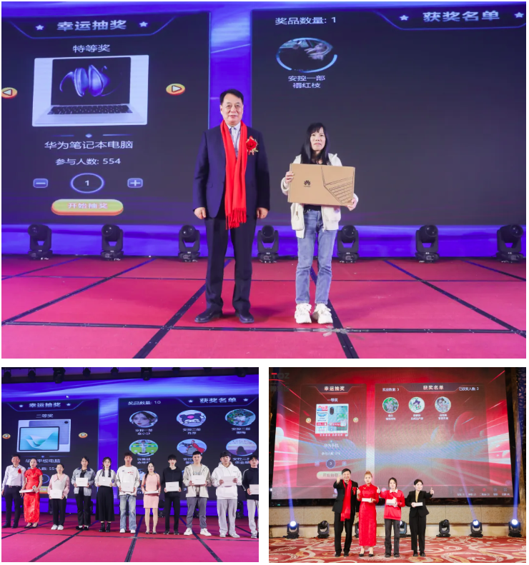 抽奖环节中,共有三场幸运儿获得最新款的华为笔记本电脑。即便未能中奖,参与者们还有机会获得现金奖励,最高可达3000元。对于那些未能获奖的参与者,我们同样准备了祝福奖,确保每位参与者都能感受到公司的关怀与温暖。