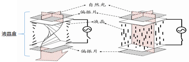 以上便是黑白液晶显示器的显示原理,利用液晶旋光性来控制光线是否通过来改变明暗从而形成图案。