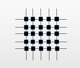 动态显示常采用点阵式矩阵显示方式。将电极做成平行状,并使上玻璃片的电极和下玻璃片的电极成立体正交结构。这样相互交叉的部分就是点阵式像元,如图中用小方块表示。当x方向的电极和y方向的电极条数都为n时,用2n个电极就可以构成n²个像元。当像元的面积越小,单位面积内数量越多,显示的图像就越细腻。