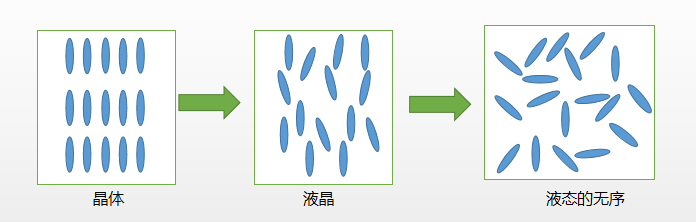 物质世界中还存在着介于固态和液态之间的物质。它就是液晶。19世纪末奥地利植物学家赖尼策尔在研究一种叫做“胆甾醇苯甲酸酯”的有机物时,发现它被加热到145.5℃时,熔化成一种浑浊的液体,在178.5℃突然全部变成透明液体。当冷却时,呈现出蓝紫色,不久后即自行消失,再次呈现混浊状液体,继续冷却,再次出现蓝紫色,然后固化成白色的晶体。面对这样的现象赖尼策尔无法解释,于是他将样品及观察记录寄给德国物理学家勒曼。勒曼研究后认为这是流动的晶体,并给这种形态的物质取名为“液晶”。现在已发现几千种有机化合物具有液晶态,它是介于固态与液态之间的中间态。与液体分子模型相比较,液晶分子没有位置序,但有取向序即分子取向十分一致